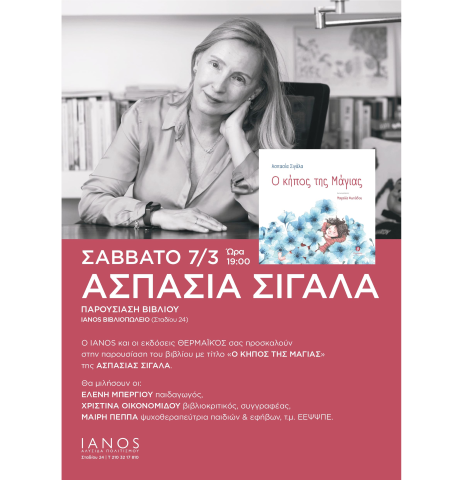 Οι εκδόσεις Θερμαϊκός και ο IANOS (Σταδίου 24, Αθήνα), σας προσκαλούν στην παρουσίαση του εικονογραφημένου βιβλίου για παιδιά της Ασπασίας Σιγάλα «Ο κήπος της Μάγιας», το Σάββατο 7 Μαρτίου στις 19:00.