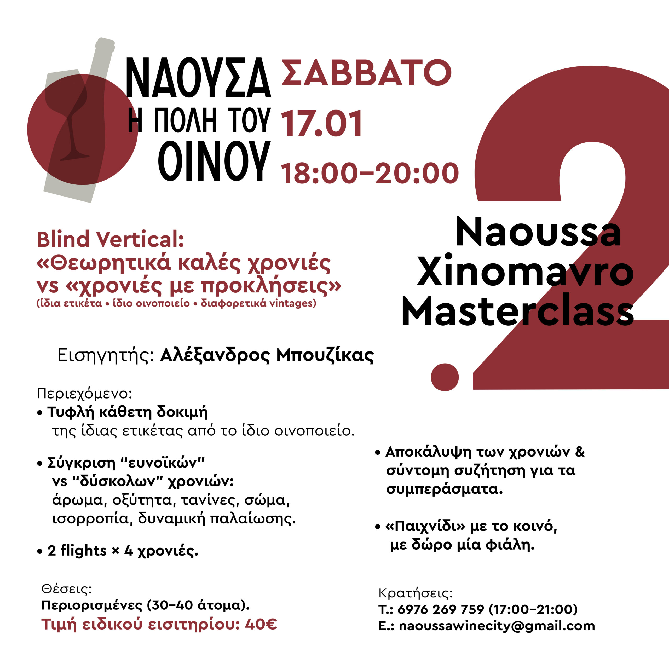 1. Masterclass 1 – Xinomavro Crossroads: Νάουσα & άλλες περιοχές” (15:00–17:00)