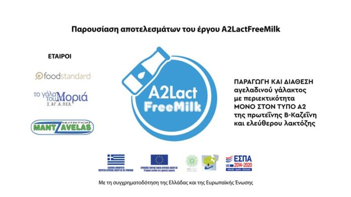Τα αποτελέσματα του έργου A2LactFreeMilk, με τίτλο «Παραγωγή και διάθεση αγελαδινού γάλακτος με περιεκτικότητα μόνο στον τύπο Α2 της πρωτεΐνης Β-Καζεΐνη και ελεύθερου λακτόζης», παρουσιάστηκαν σε εκδήλωση που πραγματοποιήθηκε στις 10 Ιουλίου, στο Fougaro Artcenter στο Ναύπλιο. Το έργο υλοποιήθηκε στο πλαίσιο του Μέτρου 16 του Προγράμματος Αγροτικής Ανάπτυξης 2014-2020 του Υπουργείου Αγροτικής Ανάπτυξης και Τροφίμων, με τη συγχρηματοδότηση της Ελλάδας και της Ευρωπαϊκής Ένωσης.