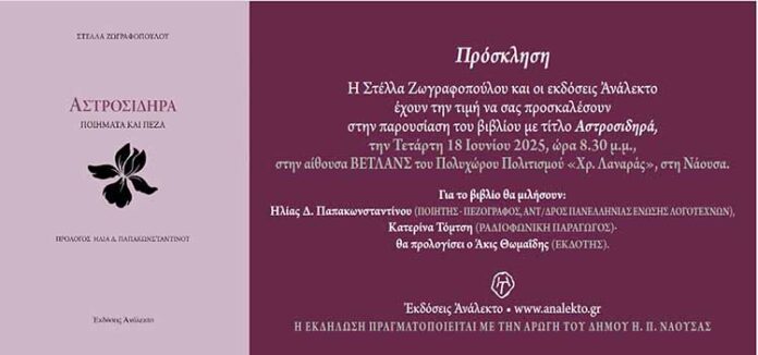 στην παρουσίαση του νέου βιβλίου της Στέλλας Ζωγραφοπούλου