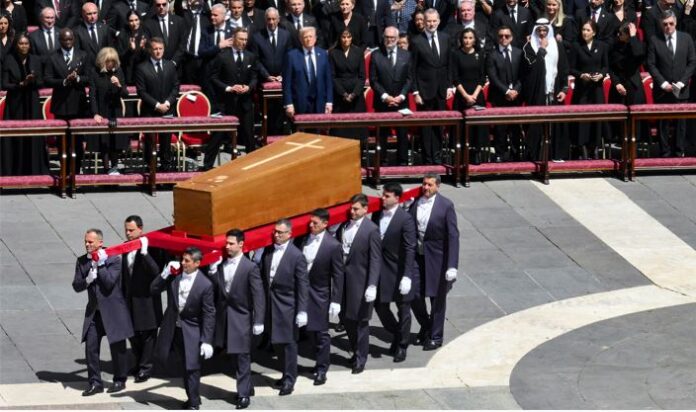 Δεκάδες διεθνείς ηγέτες βρέθηκαν στην πλατεία του Αγίου Πέτρου. Στις 10:10 τοπική ώρα άρχισε η κηδεία του πάπα Φραγκίσκου, σε μια κατάμεστη πλατεία του Αγίου Πέτρου.