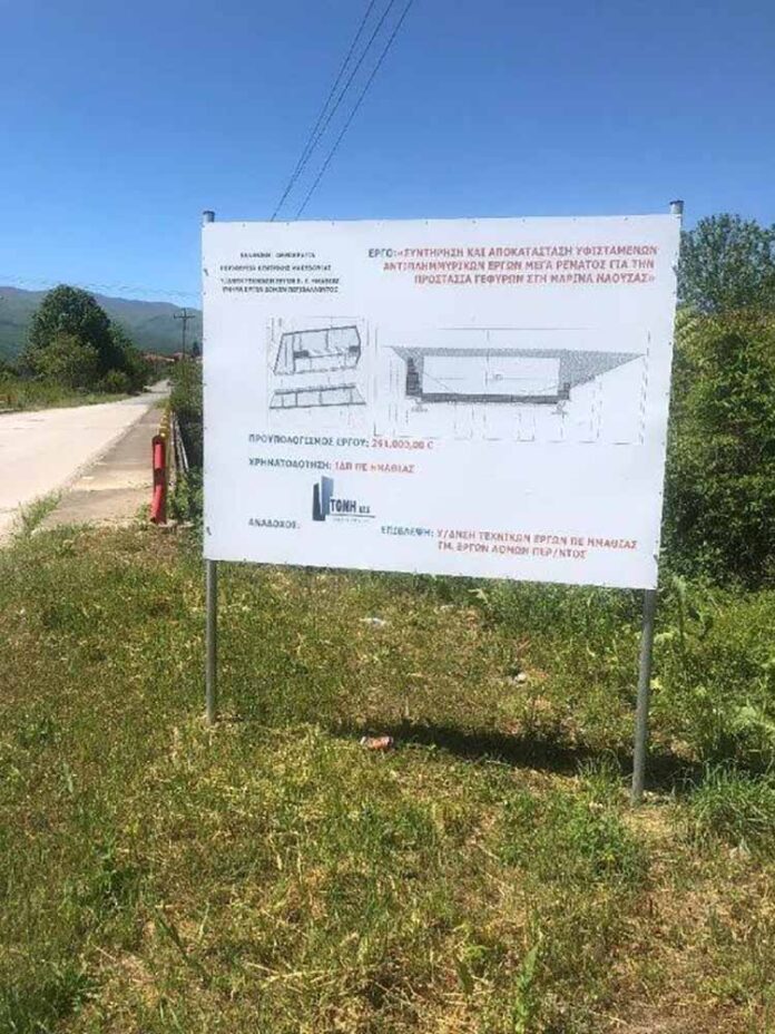 Με εντατικό ρυθμό συνεχίζονται και οι εργασίες του έργου με τίτλο «Συντήρηση και αποκατάσταση υφιστάμενων αντιπλημμυρικών έργων «Μέγα Ρέματος» για την προστασία γεφυρών στη Μαρίνα Νάουσας» προϋπολογισμού 291.000,00 ευρώ.