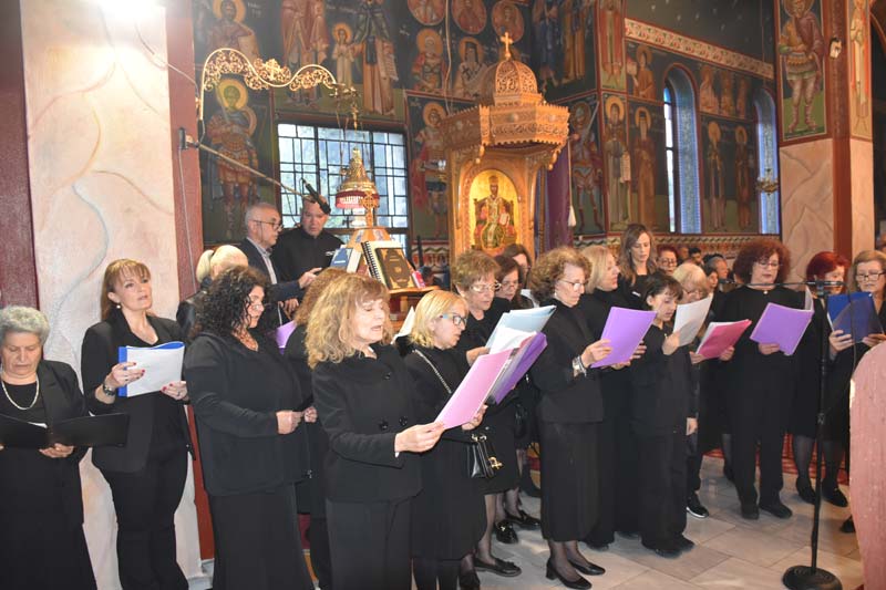Άκρως συγκινητική στιγμή αποτέλεσε η ψαλμωδία των εγκωμίων από τη δημοτική χορωδία Πλατέος, εντός του ναού κατά την διάρκεια της ακολουθίας. Παρέστησαν ο δημοτικός σύμβουλος Ιερεμίας Κιοσέογλου, ο Διοικητής του Αστυνομικού Σταθμού Πλατέος Υπαστυνόμος Α’ Κώστας Ζουρνατζής και η πρόεδρος της δημοτικής ενότητας Πλατέος Μάρθα Παντοπούλου.