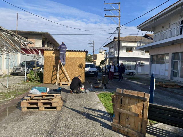 Από το πρωί μέλη και εθελοντές που θέλουν να συμβάλουν στη δημιουργία της φετινής Αστερούπολης βοηθήσαν στη μεταφορά υλικών, στο στήσιμο των σπιτιών και γενικά στη διαμόρφωση του χώρου που θα γεμίσει από τα χαμόγελα μικρών και μεγάλων.