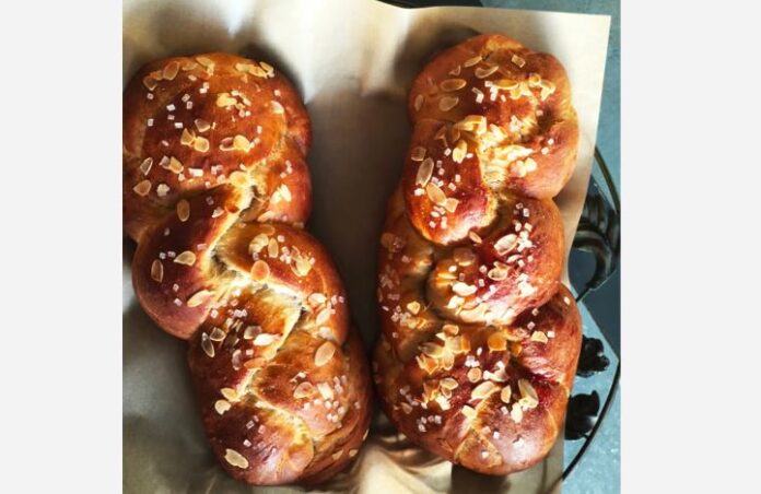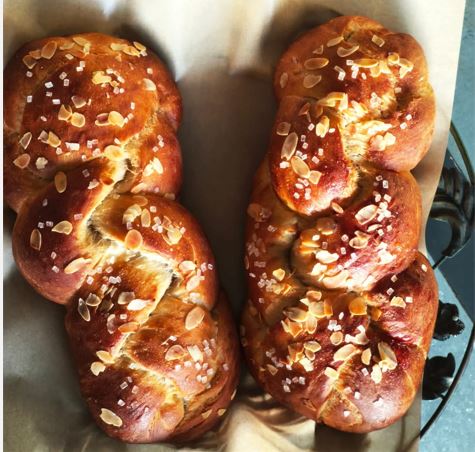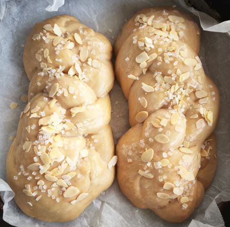 Πλέκουμε τις πλεξούδες και δημιουργούμε το τσουρέκι και του δίνουμε το τελικό σχήμα.