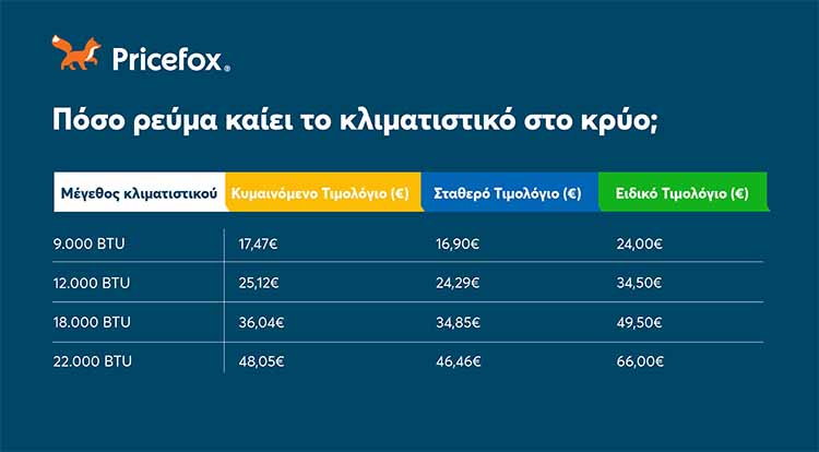 Πόσο καίει το κλιματιστικό ανά ώρα στο κρύο ανάλογα με το τιμολόγιο μου;