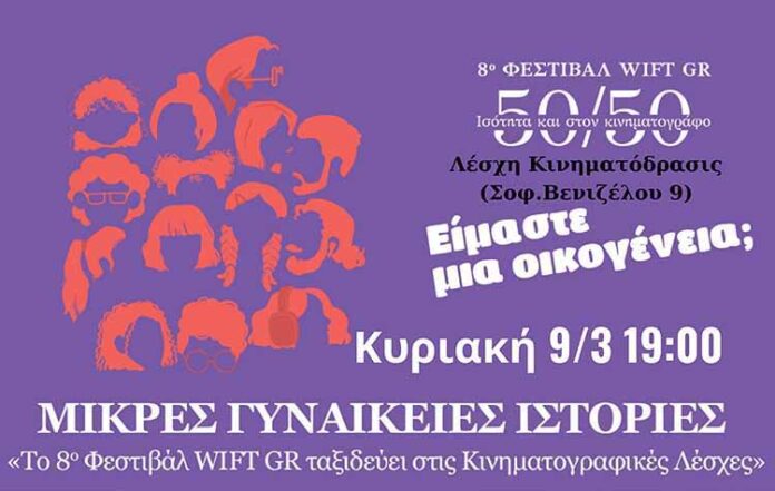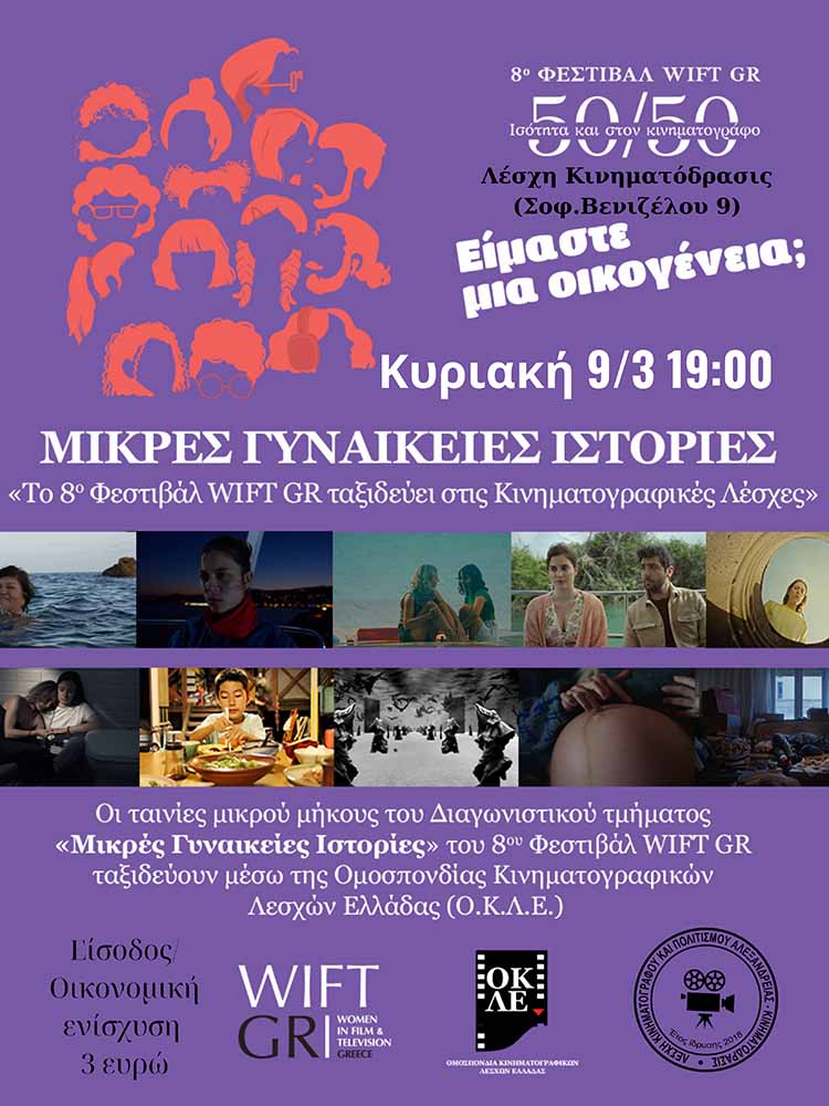Η Λέσχη Κινηματογράφου και Πολιτισμού Αλεξάνδρειας με αφορμή τον εορτασμό της Παγκόσμιας Ημέρας της Γυναίκας ,με την συμβολή της ΟΚΛΕ και του φεστιβάλ WIFT GR σας προσκαλεί στην προβολή ταινιών του διαγωνιστικού προγράμματος ταινιών Μικρού Μήκους “Μικρές Γυναικείες Ιστορίες” του 8ου Φεστιβάλ “50/50 Ισότητα και στον Κινηματογράφο“.