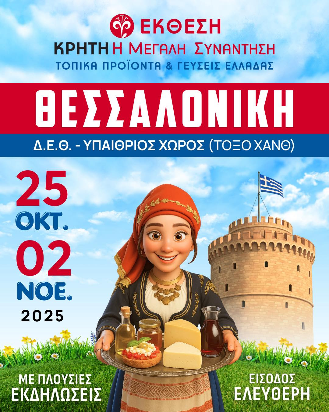 Το Φεστιβάλ «Κρήτη: Η Μεγάλη Συνάντηση – Τοπικά προϊόντα και γεύσεις Ελλάδας» επιστρέφει στη #Θεσσαλονίκη, από 25 Οκτωβρίου έως και 2 Νοεμβρίου 2025, προσκαλώντας σας σε μια μοναδική εμπειρία γεμάτη από τη ζωντανή παράδοση και τις αυθεντικές γεύσεις που κάνουν τον τόπο μας να ξεχωρίζει.