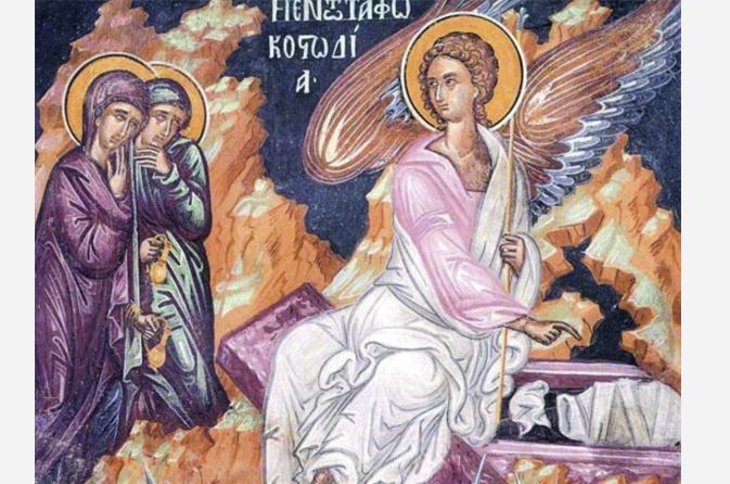 Ο άγγελος, βλέποντας τον τρόμο και την απορία στα πρόσωπά τους, τις καθησύχασε με λόγια που έμελλε να γίνουν ο πυρήνας της χριστιανικής πίστης: «Μὴ ἐκθαμβεῖσθε· Ἰησοῦν ζητεῖτε τὸν Ναζαρηνὸν τὸν ἐσταυρωμένον· ἠγέρθη, οὐκ ἔστιν ὧδε· ἴδε ὁ τόπος ὅπου ἔθηκαν αὐτόν» (Μάρκ. 16, 6). Αυτή η διακήρυξη, απλή και συνάμα κοσμογονική, ανέτρεπε τα πάντα: ο Εσταυρωμένος ζει, ο θάνατος νικήθηκε, ο τάφος είναι κενός. Η αναφορά στον “Ναζαρηνό τον εσταυρωμένο” τονίζει ότι Αυτός που αναστήθηκε είναι ο ίδιος που υπέφερε και πέθανε, συνδέοντας άρρηκτα το Πάθος με την Ανάσταση, τη θυσία με τη δόξα. Η πρόσκληση να δουν τον κενό τόπο («ἴδε ὁ τόπος») δεν ήταν απλώς μια επιβεβαίωση της απουσίας, αλλά μια πρόσκληση να γίνουν μάρτυρες του μεγαλύτερου γεγονότος της ιστορίας, της νίκης της ζωής επί της φθοράς. Η ύπαρξη μεταμορφώνεται εκ θεμελίων διότι ο θάνατος παύει να είναι το αναπόδραστο τέλος, και η Ανάσταση αναδεικνύεται ως η νέα οντολογική πραγματικότητα, η εγγύηση της αφθαρσίας για όσους πιστεύουν. Κατόπιν, ο άγγελος τους ανέθεσε μια αποστολή: «Ἀλλ᾿ ὑπάγετε εἴπατε τοῖς μαθηταῖς αὐτοῦ καὶ τῷ Πέτρῳ ὅτι προάγει ὑμᾶς εἰς τὴν Γαλιλαίαν· ἐκεῖ αὐτὸν ὄψεσθε, καθὼς εἶπεν ὑμῖν» (Μάρκ. 16, 7). Οι γυναίκες, οι πρώτες μάρτυρες της Ανάστασης, καλούνταν να γίνουν οι πρώτοι απόστολοι, οι φορείς της είδησης που θα άλλαζε τον κόσμο. Η Γαλιλαία, ο τόπος της αρχικής κλήσης και δράσης του Ιησού, οριζόταν ως ο τόπος της νέας συνάντησης, της αποκατάστασης της σχέσης μετά την προδοσία και την εγκατάλειψη. Η ειδική μνεία στον Πέτρο, τον μαθητή που είχε αρνηθεί τον Διδάσκαλο, ήταν ένα μήνυμα ελέους και συγχώρεσης, μια απόδειξη ότι η αγάπη του Χριστού ξεπερνά την ανθρώπινη αδυναμία.