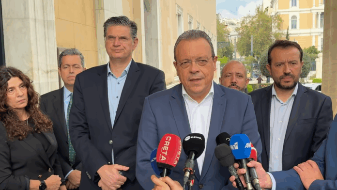 Δήλωση του Προέδρου του ΣΥΡΙΖΑ-ΠΣ, Σωκράτη Φάμελλου από το περιστύλιο της Βουλής μετά την αναβολή της συνεδρίασης της Επιτροπής Οικονομικών & Δημόσιας Διοίκησης για το κλείσιμο των υποκαταστημάτων των ΕΛΤΑ