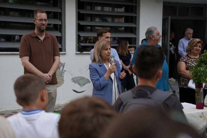 Η Περιφερειάρχης συνομίλησε με εκπαιδευτικούς, γονείς και μαθητές, ευχόμενη σε όλους μια καλή και δημιουργική σχολική χρονιά.