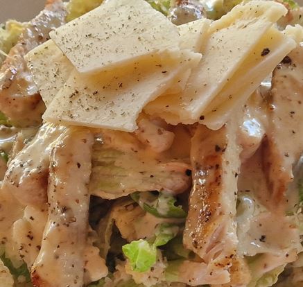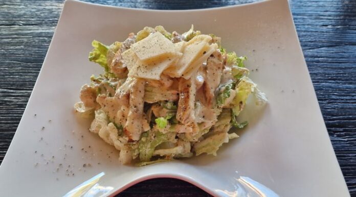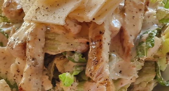 Συνδυάζει το κοτόπουλο με τη πράσινη σαλάτα και η γραβιέρα Κρήτης δίνει μια πινελιά διαφορετική όπως και το απίθανο dressing