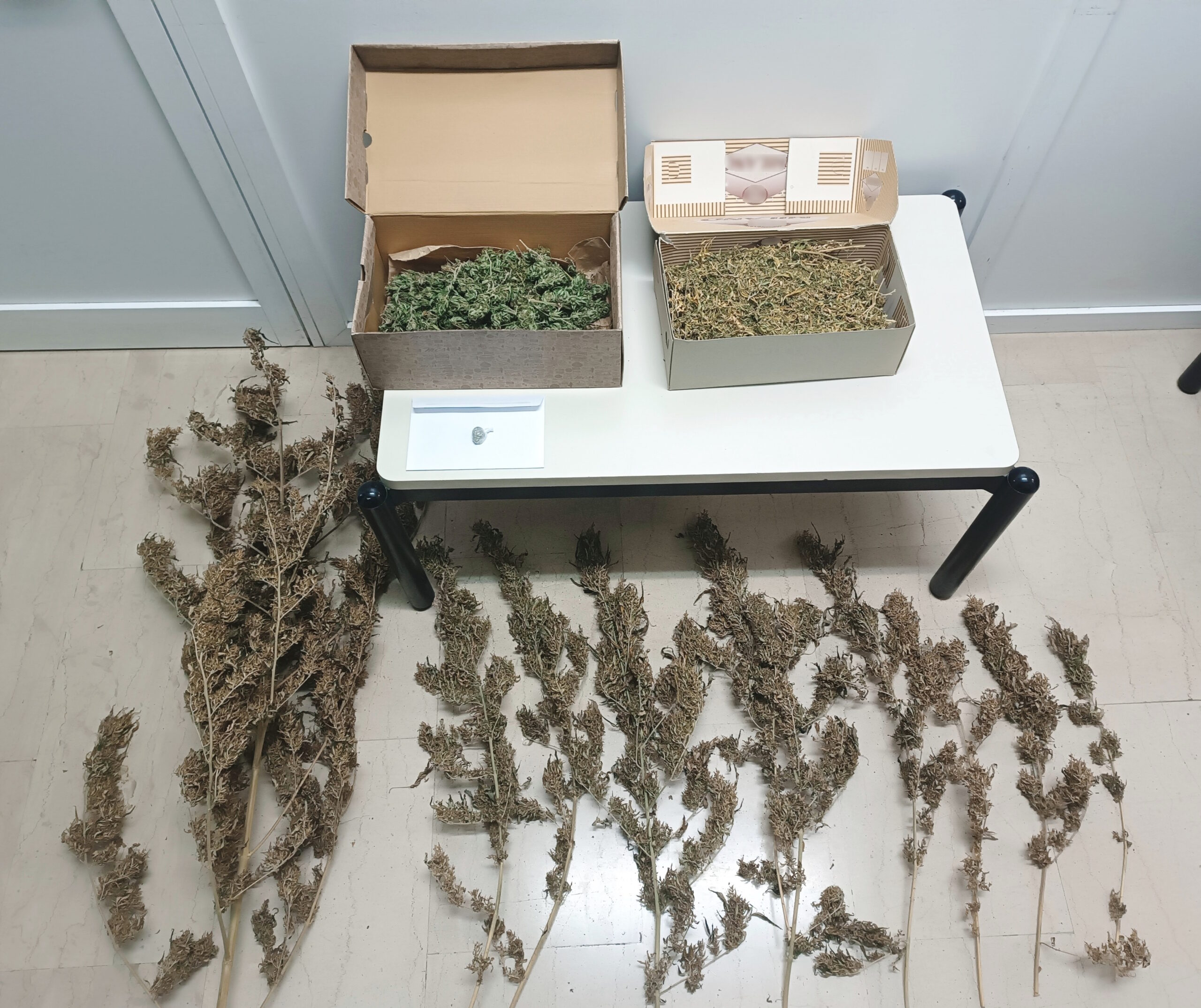 - 6 συσκευασίες με ακατέργαστη κάνναβη, συνολικού βάρους 2 κιλών και 739 γραμμαρίων και