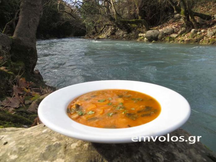 Απολαμβάνουμε την φασολάδα μας ζεστή.