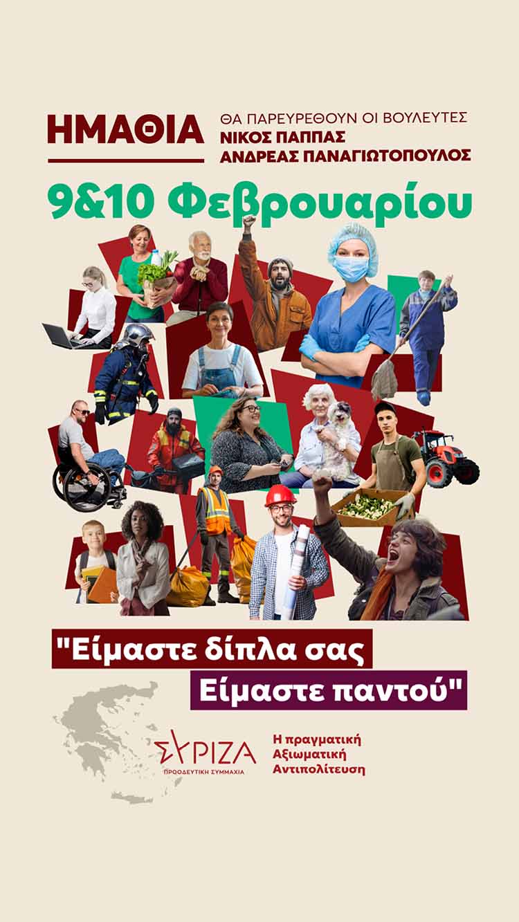 18.30 Συνεδρίαση στα Γραφεία του Κόμματος στη Βέροια, της διευρυμένης Ν.Ε, των συντονιστικών των Οργανώσεων και των μελών του Κόμματος.