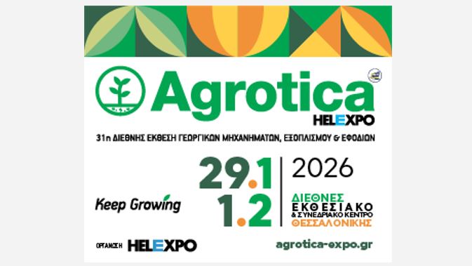 Κάθε προηγούμενο έχει ξεπεράσει ήδη η ζήτηση για συμμετοχή στη 31η Διεθνή Έκθεση Γεωργικών Μηχανημάτων, Εξοπλισμού & Εφοδίων, «AGROTICA», που θα πραγματοποιηθεί στο διάστημα από τις 29 Ιανουαρίου έως και την 1η Φεβρουαρίου 2026 και αναμένεται να είναι μία από τις μεγαλύτερες και πληρέστερες στην ιστορία του θεσμού, όπως επισημαίνουν η διοργανώτρια ΔΕΘ_Helexpo σε σημερινή της ανακοίνωση.