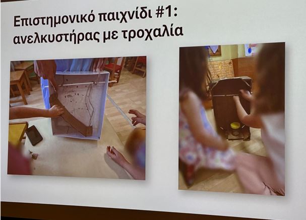 Το παιχνίδι είναι η κυρίαρχη εκπαιδευτική δραστηριότητα στις μικρές ηλικίες, οπότε πιστέψαμε στο παιχνίδι και αυτό ήταν το μέσο με το οποίο δουλέψαμε […] Θέλαμε όμως ταυτόχρονα να αποκτάνε γνώση περιεχομένου, διαδικαστική και επιστημολογική γνώση, δηλαδή να ξέρουν και πώς να μαθαίνουν, να καταλαβαίνουν τι μαθαίνουν, να μπορούν να κάνουν τα δικά τους πειράματα, να ερμηνεύουν τα δεδομένα, να χτίζουν δηλαδή δεξιότητες φυσικών και επιστημονικού γραμματισμού κι όλα αυτά να τα συνδέουν με την πραγματικότητα και την καθημερινή τους ζωή. Δηλαδή, στόχος του προγράμματος ήταν να καταφέρει να έχει αυτή την ισορροπία», εξήγησε, παρουσιάζοντας τα αποτελέσματα από την εφαρμογή των εννοιολογικών παιχνιδόκοσμων στην τάξη, η επ. καθηγήτρια του Τμήματος Επιστημών Προσχολικής Αγωγής και Εκπαίδευσης του ΑΠΘ Γλυκερία Φραγκιαδάκη.