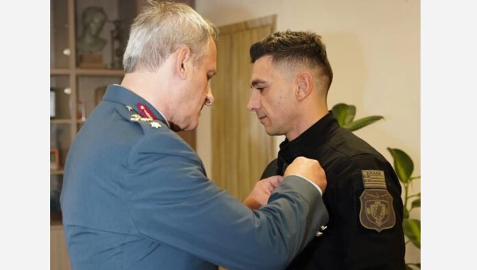 Ο τιμώμενος αστυνομικός είχε δεχθεί πυρά στο πόδι από πυροβόλο όπλο, όταν στις 31 Οκτωβρίου του 2013, κι ενώ βρισκόταν άοπλος, εκτός υπηρεσίας, «ενεργώντας με ζήλο και τόλμη», επιχείρησε με λαβή αυτοάμυνας να ακινητοποιήσει τον έναν από τους δύο δράστες ληστείας σε υποκατάστημα των ΕΛΤΑ στον Λαγκαδά Θεσσαλονίκης, όπως αναφέρεται σε σχετική ανακοίνωση.