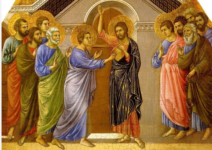 Φωτογραφία: «Η Απιστία του Αγίου Θωμά», Duccio di Buoninsegna, 1308. Τμήμα του πολύπτυχου της Maestà, εκτίθεται στο Μουσείο του Καθεδρικού Ναού της Σιένα (Museo dell’Opera Metropolitana del Duomo).
