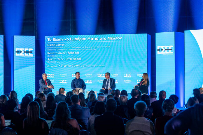 Αθήνα 23 Σεπτεμβρίου 2025 – Οι προκλήσεις και οι προοπτικές του κλάδου του λιανεμπορίου παρουσιάστηκαν στην ενότητα «Το Ελληνικό Εμπόριο: Ματιά στο Μέλλον», στο πλαίσιο της επετειακής εκδήλωσης της Ελληνικής Συνομοσπονδίας Εμπορίου και Επιχειρηματικότητας (ΕΣΕΕ) που γιόρτασε τη συμπλήρωση 20 ετών από την καθιέρωση της Ημέρας Ελληνικού Εμπορίου στο Μουσείο Μπενάκη, υπό την αιγίδα της Α.Ε. του Προέδρου της Δημοκρατίας, κ. Κωνσταντίνου Αν. Τασούλα.