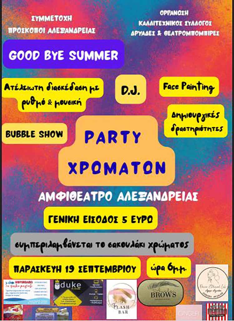 Ο Κα.Συ.Θε. Δρυάδες και οι Θεατρομπόμπιρες σε προσκαλούν στο απόλυτο Πάρτι Χρωμάτων – Goodbye Summer!