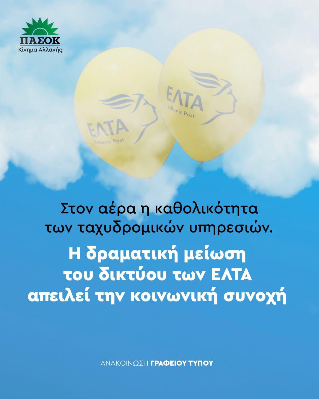 Δεδομένου ότι, τα ΕΛΤΑ δεν αποτελούν απλώς πάροχο ταχυδρομικών υπηρεσιών, αλλά κρίσιμο κρίκο κοινωνικής συνοχής, η κυβέρνηση οφείλει να απαντήσει :