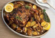 Σερβίρουμε φινίροντας το πιάτο με ελίτσες και πιπεριές ή αγγουράκια και ντοματάκια τσέρυ.