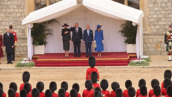 Η τελετή συμπεριλάμβανε μεταξύ άλλων πομπή με άμαξες και έφιππους στρατιωτικούς από το Σύνταγμα Έφιππης Φρουράς η οποία πλαισιωνόταν από μέλη των Ενόπλων Δυνάμεων και των τριών σωμάτων. Του Βασιλικού Ναυτικού, της Αεροπορίας ( RAF) και του Στρατού. Λίγο αργότερα ο πρόεδρος Τραμπ επιθεώρησε την Τιμητική Φρουρά αφού πρώτα ακούστηκαν οι εθνικοί ύμνοι και των δύο χωρών.