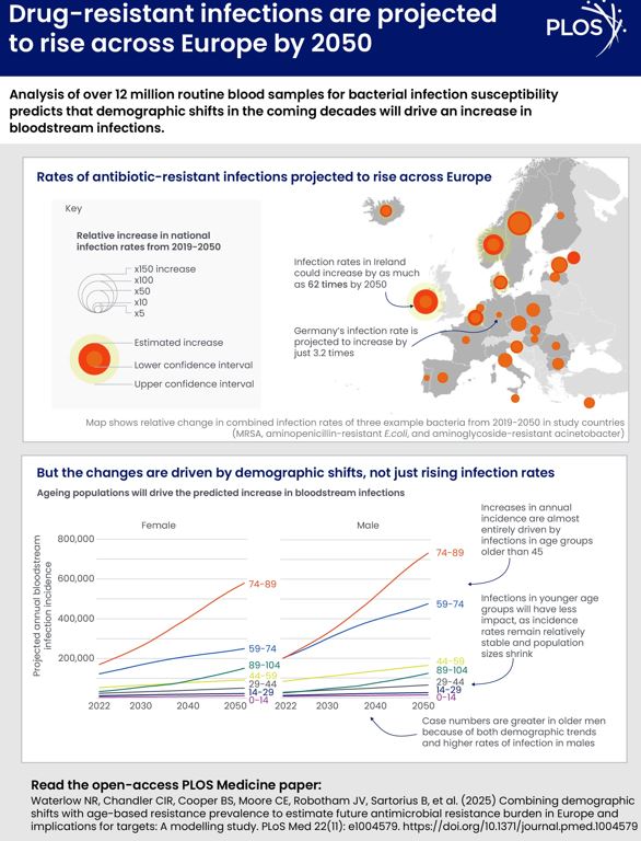 Τα ποσοστά των λοιμώξεων του αίματος που προκαλούνται από ανθεκτικά στα φάρμακα βακτήρια αναμένεται να αυξηθούν σημαντικά σε όλη την Ευρώπη τα επόμενα πέντε χρόνια, κυρίως λόγω της γήρανσης του πληθυσμού, σύμφωνα με μελέτη που δημοσιεύτηκε στο περιοδικό ανοιχτής πρόσβασης «PLOS Medicine».