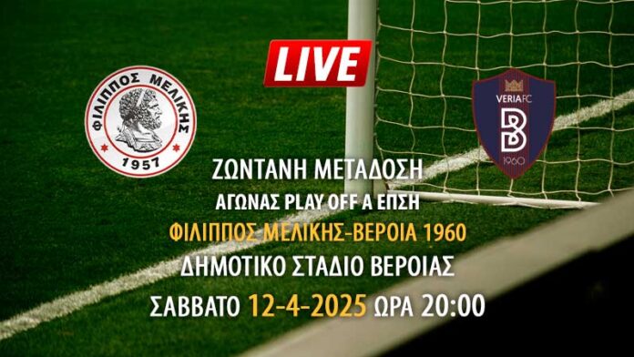Παρακολουθήστε ζωντανά από τον ΕΜΒΟΛΟ τον αγώνα PLAY OFF Α ΕΠΣΗ μεταξύ ΦΙΛΙΠΠΟΣ ΜΕΛΙΚΗΣ-ΒΕΡΟΙΑ 1960 που θα διεξαχθεί στο Δημοτικό στάδιο Βέροιας το Σάββατο 12-4-2025 και ώρα 20:00